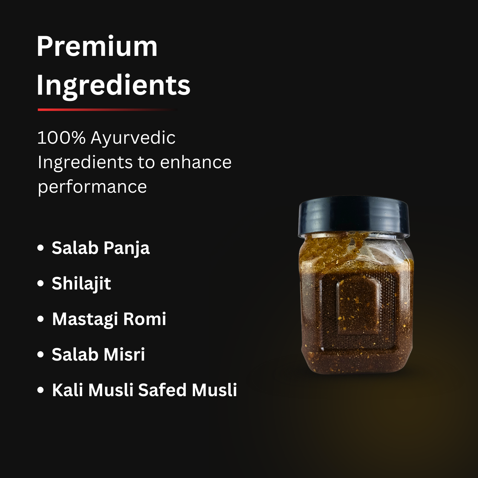 This traditional herbal tonic is made using a powerful combination of Salab Panja, Mastagi Romi, Salab Misri, Shilajit, Safed Musli and many other valuable Ayurvedic herbs, which have been trusted for centuries to support strength, energy, and physical performance.